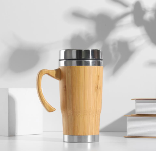 新款不銹鋼保溫杯創意禮品竹子杯 高檔手柄竹殼杯